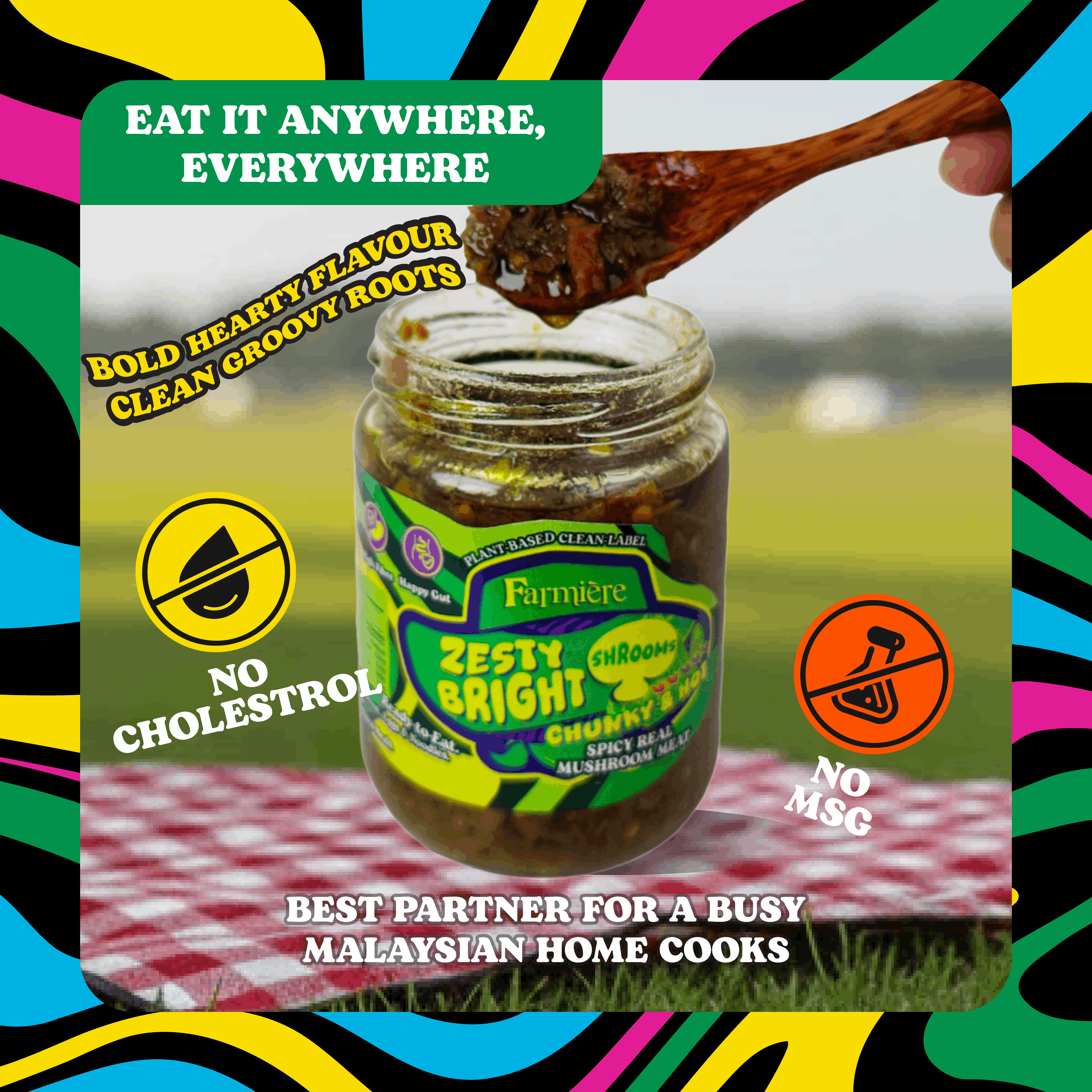 Sunshine in a jar. Chunky mushrooms, tangy lemongrass and a bright green-chilli lift turn everyday meals into flavour moments. Our ready-to-eat mushroom meat side dish is clean-label, gut-happy and family-ready. From rice bowls to brunch spreads.